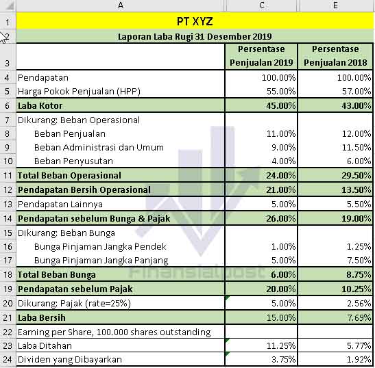 A common size financial statement displays items as a percentage of a common base figure total sales revenue for example. Dalam laporan laba rugi akun-akunnya dibagi dengan pendapatan sedangkan di neraca setiap akun dibandingkan dengan total aset. Laporan keuangan adalah catatan pelaporan keuangaan perusahaan dalam jangka.