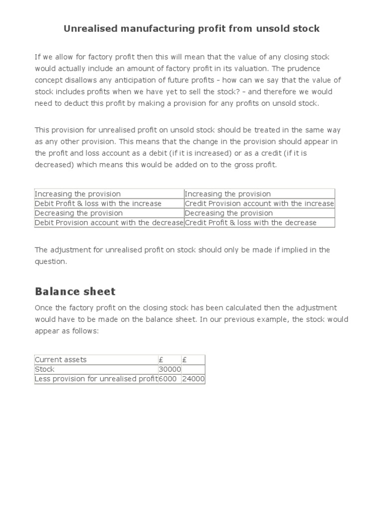 Goods at market value rather than at cost. Here is the video about trading and Manufacturing Account Simple explanation with solved problem. Provision for unrealised profit on stock is calculated.